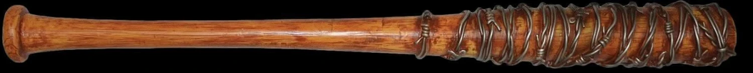 The Negan’s Bat Lucille Prop is made from top quality Polyurethane foam giving it the most realistic screen used look and feel. The amazing finish on Negan’s Bat Lucille looks like a true wood finished with real steel barbs. You will swear that it’s an actual Louisville Slugger just like the bat used in the show we even added the trademark black circle on the Bat. Negan’s Bat Lucille is 36 inches and weights almost two pounds. You will swear that this was the original screen used bat held by the most famous leader in the Walking Dead Universe Negan.