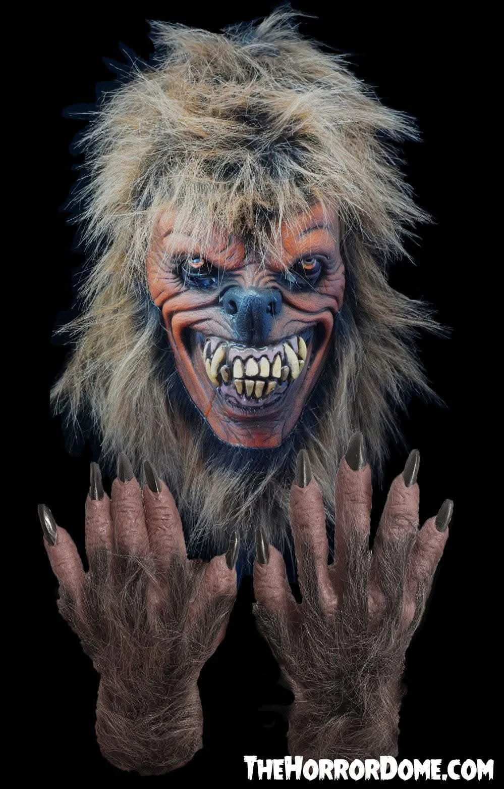 Peering canine eyes, a sensitive wolven nose, and a thick mane of faux wolven fur are the standout features on this mask. Every wrinkle of his jowls threatens violence to those who view him. Knowing this beast is out there is good enough reason to avoid dark and lonely woods, but don’t think you’re safe at home. This creature could be your neighbor, your priest, or even your child. All it takes is a single scratch to spread the horror to a new victim, so perhaps it’s fortunate they tend to kill their prey.